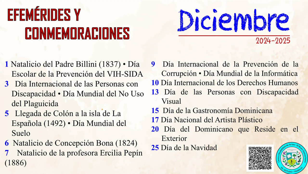 2022 (12) 2022-2023 (18) 2023-2024 (74) 2024-2025 (26) Abril (12) Agua (12) Celebración (12) Conmemoraciones (168) Dominicana (21) Día Internacional (11) Día Nacional (14) Educación (57) Efeméride (125) Efeméride del mes (36) febrero (15) Internacional (22) Juan Pablo Duarte (17) Marzo (22) Mayo (23) Mujer (11) Mundial (18) Nacional (23) Ramón Matías Mella Castillo (14) República Dominicana (30) Trimestre Patrio (23)